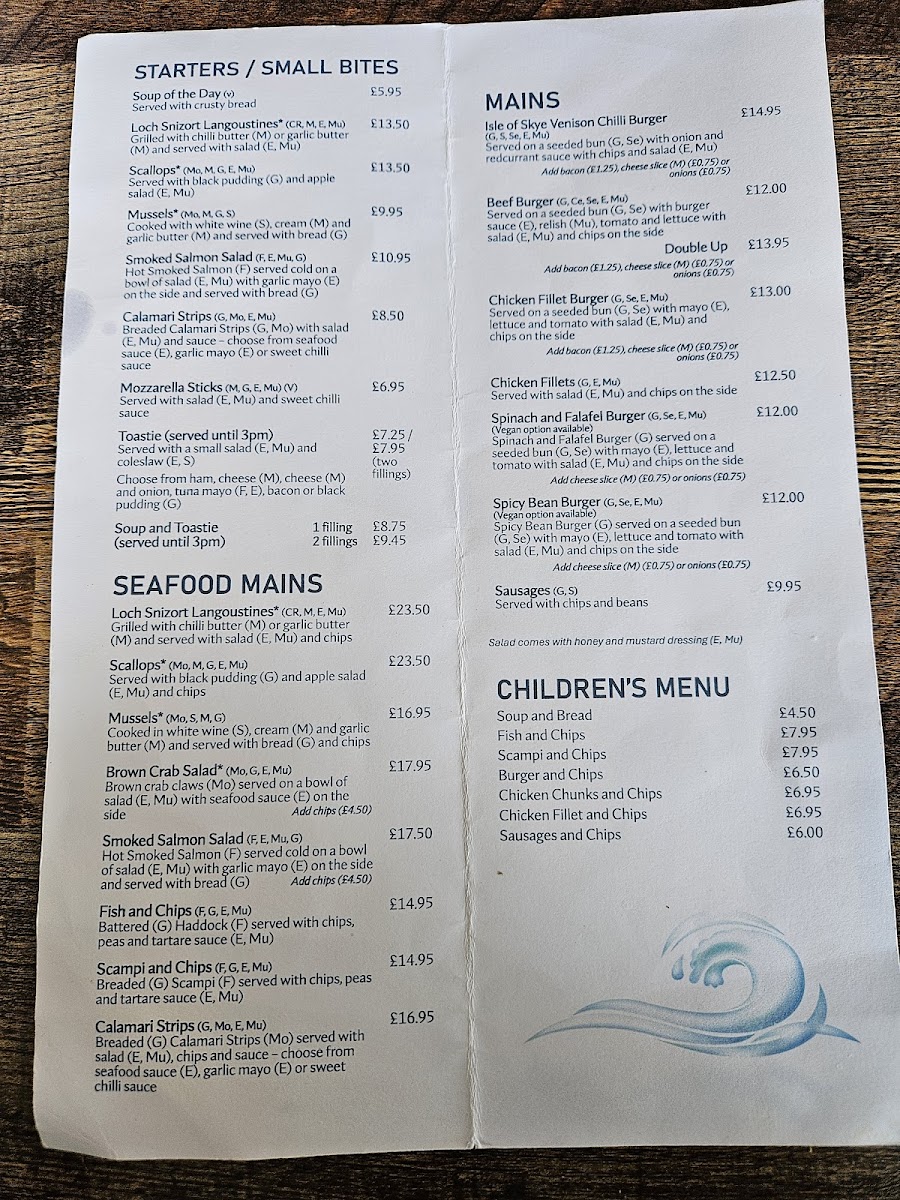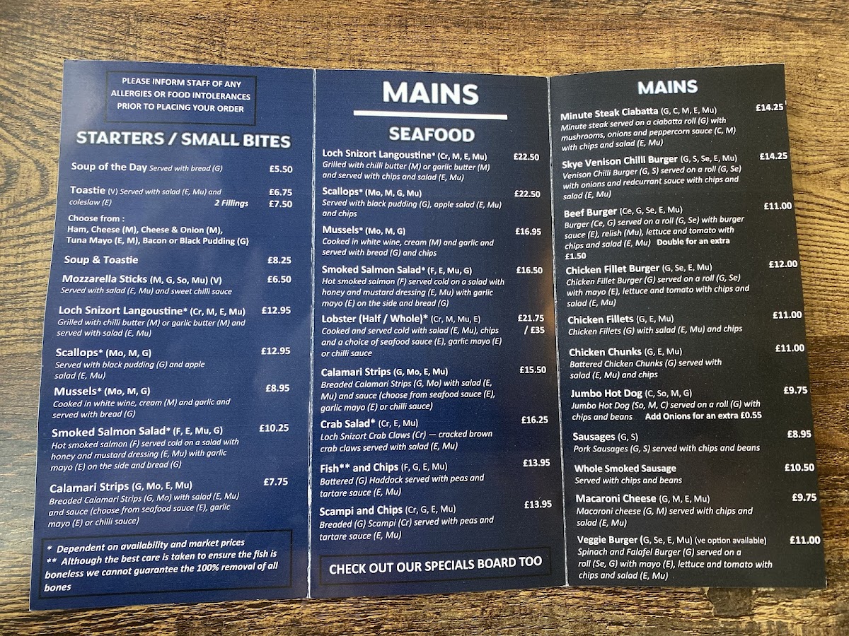Whether you’re stopping by for a relaxed lunch, a casual dinner, or a quick takeout, the variety here suits many moments. The menu has something for everyone—from warming soups like the tomato and basil or seafood chowder, to fresh seafood selections including mussels, scallops, and langoustines. On cooler days, a hot chocolate or a pint of Skye IPA pairs well with the cozy atmosphere.